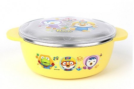 Bát ăn trẻ em inox có nắp đậy Pororo Hàn Quốc