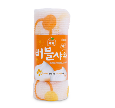 Khăn tắm hình hoa màu cam Thành phần: Nilon, polyester, phân tử Nano chiết xuất từ thảo mộc Hàn Quốc Công dụng: Massage giúp lưu thông máu, tẩy da chết, loại bỏ bụi bẩn, làm sạch lỗ chân lông, loại bỏ cảm giác trơn nhờn khiến cơ thể cảm thấy thoải mái sau khi tắm. Khăn dài nên giúp làm sạch vùng lưng mà tay không thể với tới. |