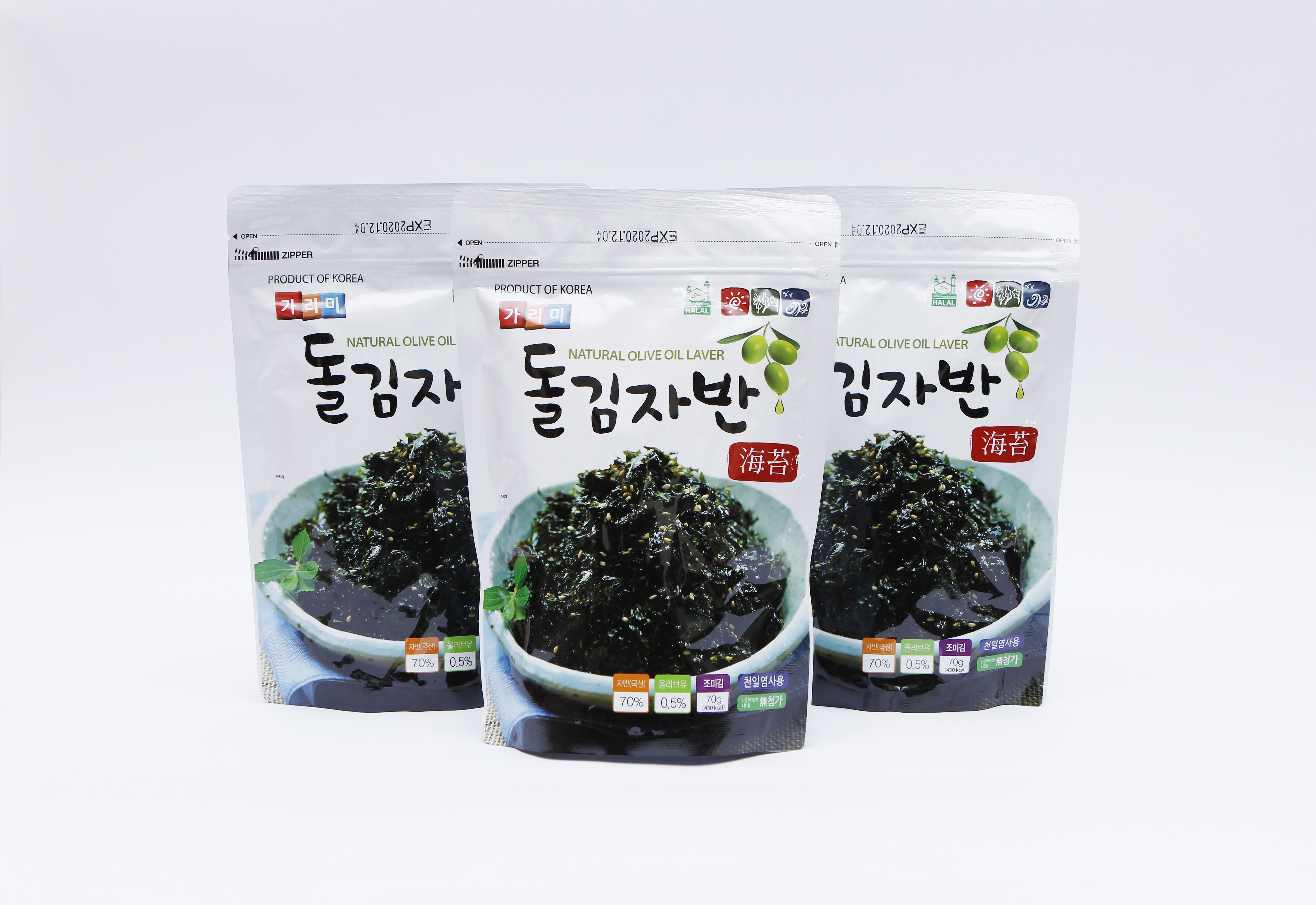 Rong biển oliu Hàn Quốc 70g là loại rong biển, lá kim được ép khô cắt vụn, được tẩm ướp với dầu oliu nhằm tăng chất dinh dưỡng và tạo mùi thơm khi sử dụng với những công dụng như: