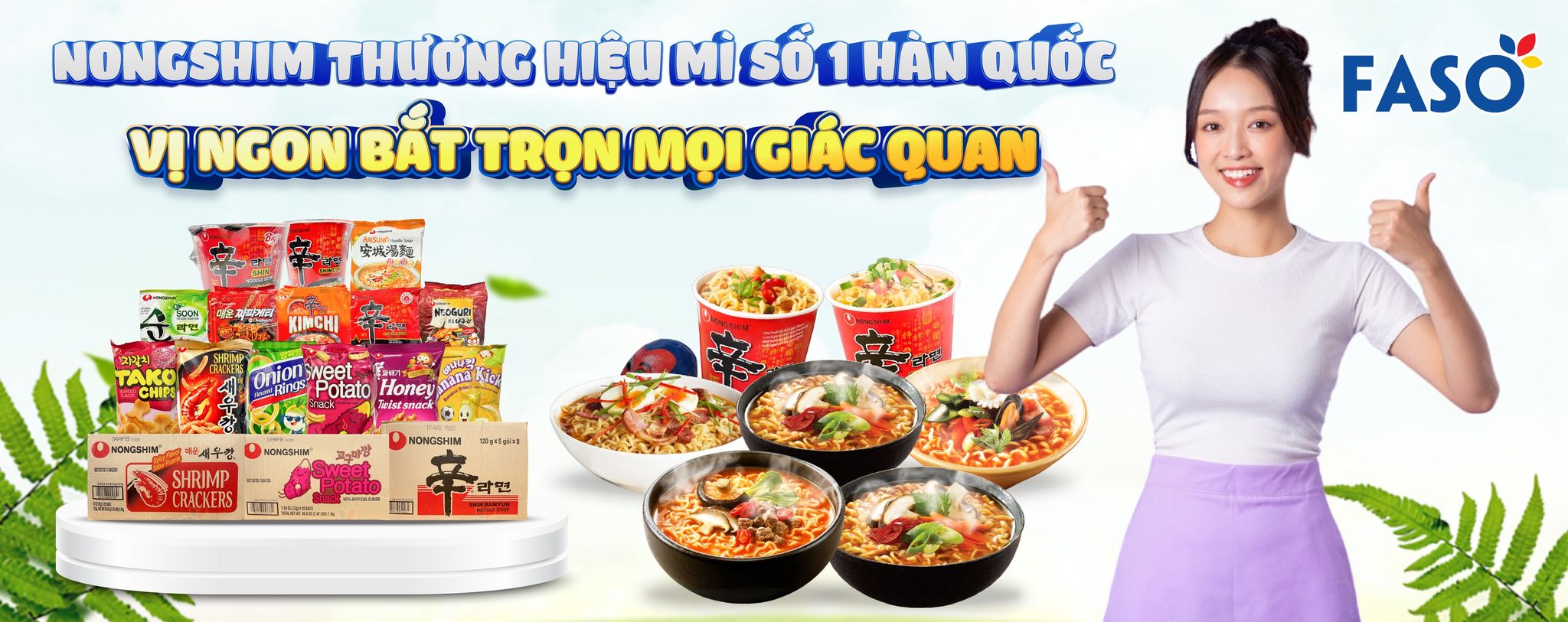 Tại Faso tiêu dùng Hàn Quốc có đủ loại sản phẩm của mì NongShim Hàn Quốc để bạn có thể trải nghiệm đủ các hương vị. Ngoài ra Faso còn cung cấp hàng với số lượng lớn và tuyển đại lý cho toàn quốc