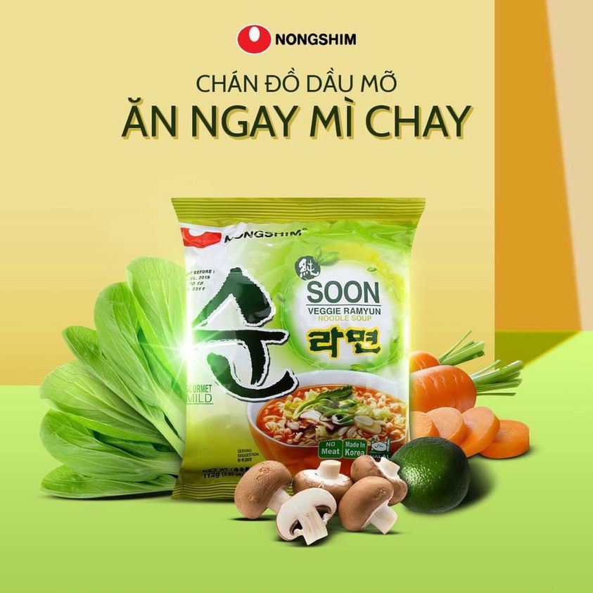 Mì chay Nongshim l lấy cảm hứng từ món mì nổi tiếng gọi là Shin Ramyun tại Hàn Quốc, tuy nhiên sản phẩm này có sự khác biệt đó là tất cả các nguyên liệu đều 100% thuần chay. Mì chay Nongshim cung cấp sự thuận tiện cho việc nấu ăn nhanh chóng và dễ dàng, phù hợp cho những người muốn thưởng thức mì chay truyền thống.