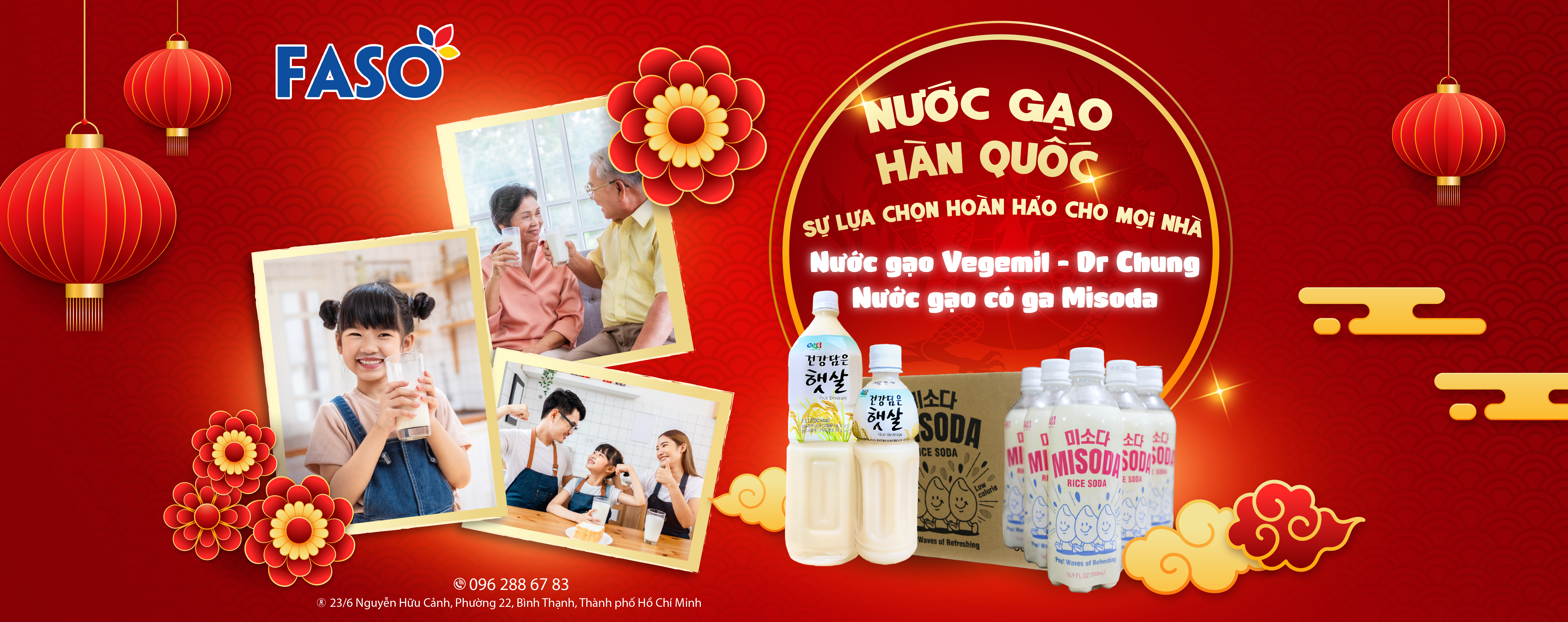 Faso - Tiêu dùng Hàn Quốc là một đơn vị chuyên phân phối các sản phẩm hàng tiêu dùng Hàn Quốc chính hãng tại Việt Na.Faso hiện đnags là nhà phân phối lớn trực tiếp các sản phẩm nước gạo Hàn Quốc từ thương hiệu Dr.Chung thơm ngon chất lượng được yêu thích nhất. Faso với nhiều kinh nghiệm trong cung cấp các sản phẩm nhập khẩu, cam kết mang đến nước gạo Hàn Quốc chính hãng ngon nhất với giá tốt nhất. Bạn có thể an tâm khi mua tại đây để cảm nhận hương vị thơm ngon hấp dẫn của loại thức uống dinh dưỡng được yêu thích nhất hiện nay.